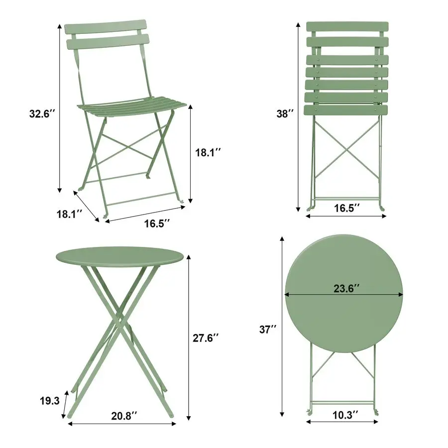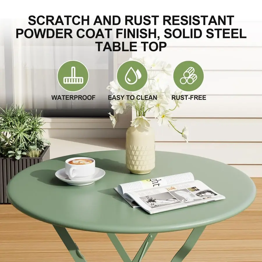 Add instant charm to your balcony or patio with this compact 3-piece folding bistro set. Featuring a durable powder-coated metal frame and a space-saving fold-flat design, it’s perfect for apartments, small patios, or cozy outdoor corners. Lightweight, stylish, and easy to store, it delivers everyday comfort without taking up permanent space.